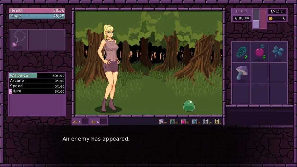 The world opens up through a classic world map style, with points of interest like dark forests, mysterious ruins, and other towns. This is where the Town of Magic gameplay truly shines. Exploration feels rewarding and slightly perilous. You’ll navigate these areas, triggering random encounters that can range from friendly (or flirtatious) travellers to dangerous monsters. The battle system introduces a clever twist: enemies don’t just attack your health. Some specifically target your sanity or your resources, adding a layer of strategic tension. Do you push deeper into the forest risk your character’s mental state, or play it safe?